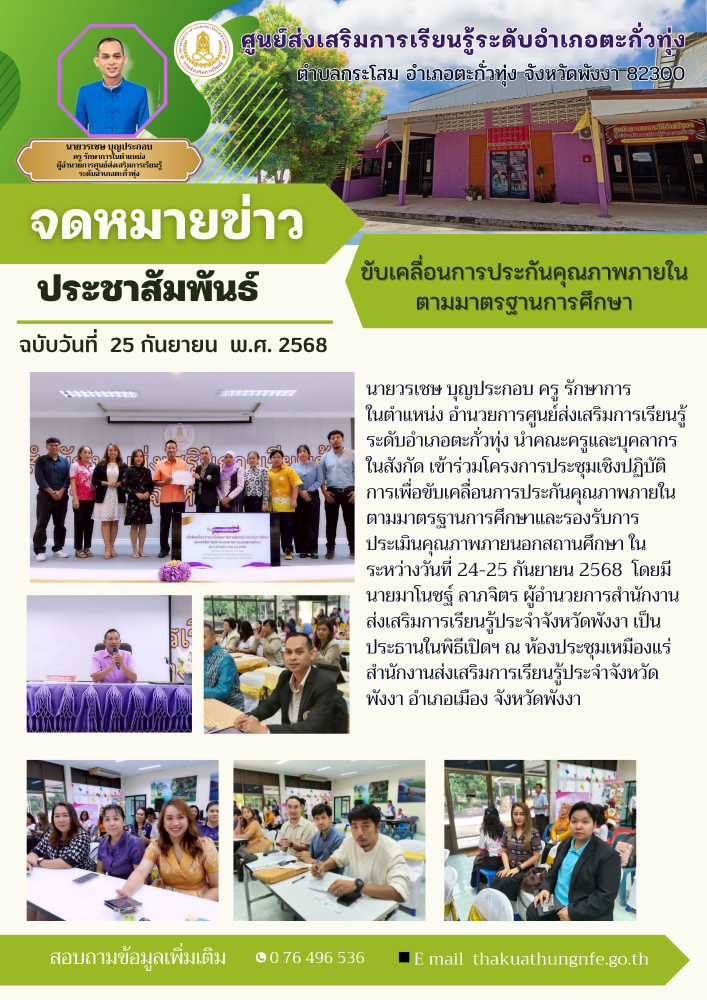 โครงการประชุมบุคลากรเพื่อพัฒนาระบบการประกันคุณภาพภายใน สกร.ระดับอำเภอตะกั่วทุ่ง ประจำปี พ.ศ.2568